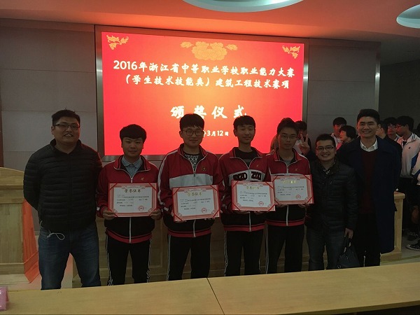 陈伟烽、邵浩琦、沈烨东、封紫阳同学荣获2016年全省中等职业学校职业能力大赛工程测量项目一等奖