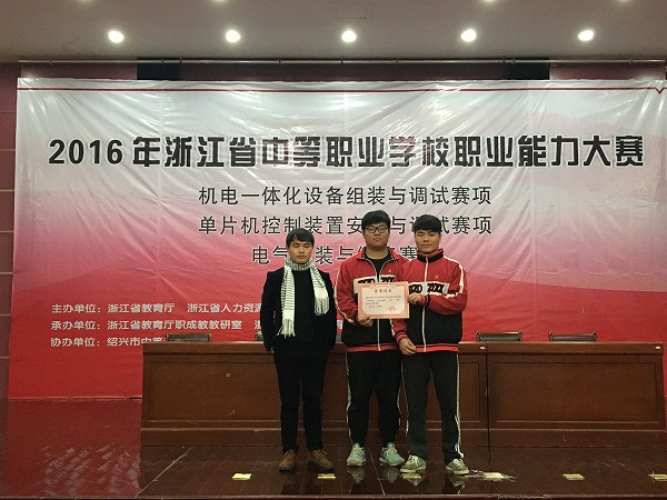 冯建强、朱锦杰同学荣获2016年省中职学校职业能力大赛电气安装与维修项目一等奖 来源:教务处 作者:张少萍 发布时间:2016-03-23 浏览次数: 次 【字体:小 大】 电气安装与维修比赛项目获奖选手与指导教师