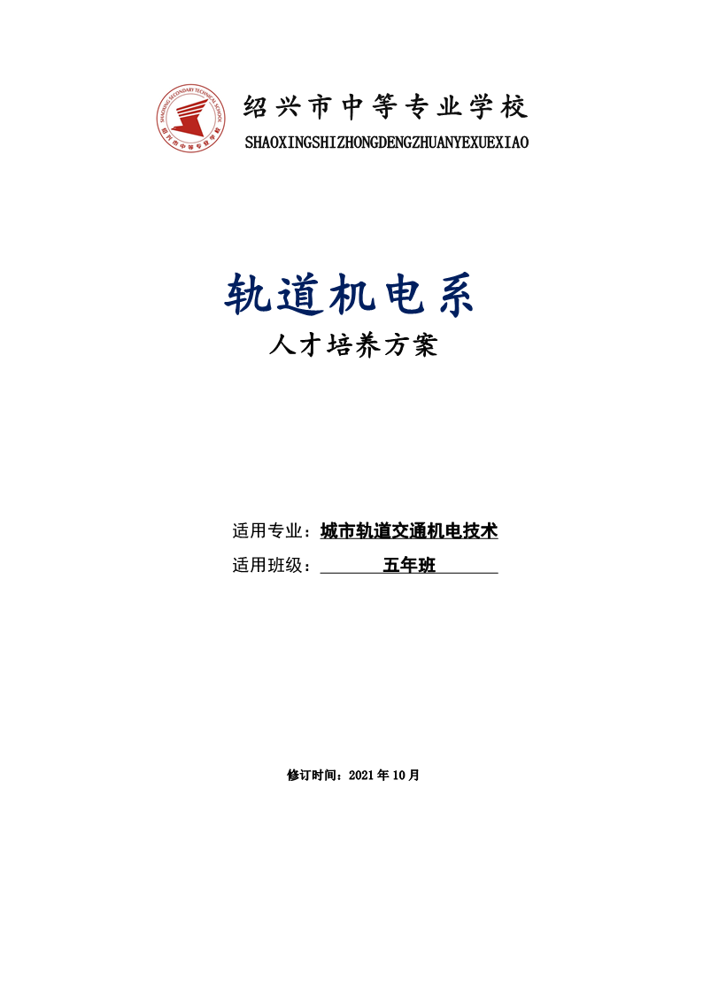 轨道机电系城市轨道交通机电技术专业人才培养方案