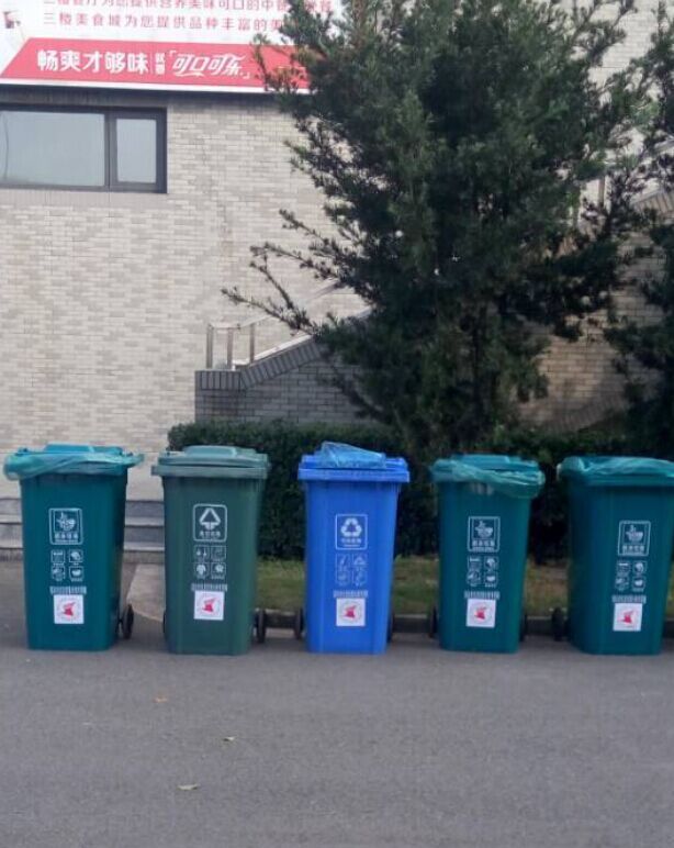 2015年12月1号,从来周开始,开始实行垃圾分类。在诺大的校园里摆满了红色、蓝色、绿色、灰色的新颖垃圾桶,为青葱的校园里增加了一抹亮丽的色彩,成为一道风景线。