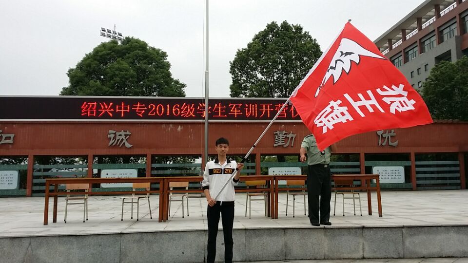 16机电2班军训开幕式喜得“狼王旗”