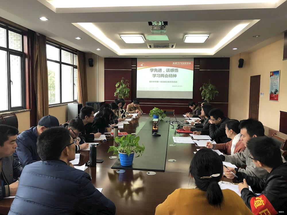 会议第二项是开展“学先进,谈感悟,学习两会精神”的专题教育。首先是学习“范小仙同志”、“徐海燕同志”的先进事迹,由支部宣传委员吴培芳同志宣讲两位先进党员的优秀事迹和感人故事,全体党员认真聆听,勤做笔记,记录先进党员的优秀思想和行动。而后,第一党支部的王秋林同志、江凡同志、俞菊红同志、彭增鑫同志作为本次交流的党员代表进行了个人发言,他们经过前期的自学,并结合自身教育工作经历,提出感想,表明态度,力争像先进党员同志学习,争取在日后的工作中成为一名更优秀的同志。