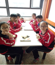 这学期,我们在英语课上首次体验了实践课程——做寿司。听到去食堂制作寿司,我们班所有同学显得格外兴奋,都摩拳擦掌,准备好好的大干一场。在制作之前,老师先让我们明确了制作寿司的全过程。第一步,准备米饭加上白醋,等待冷却。二,将煮熟的鸡蛋切成蛋皮,呈小条。三,将寿司帘打开,放上材料。四,把寿司帘卷起。五,切段。