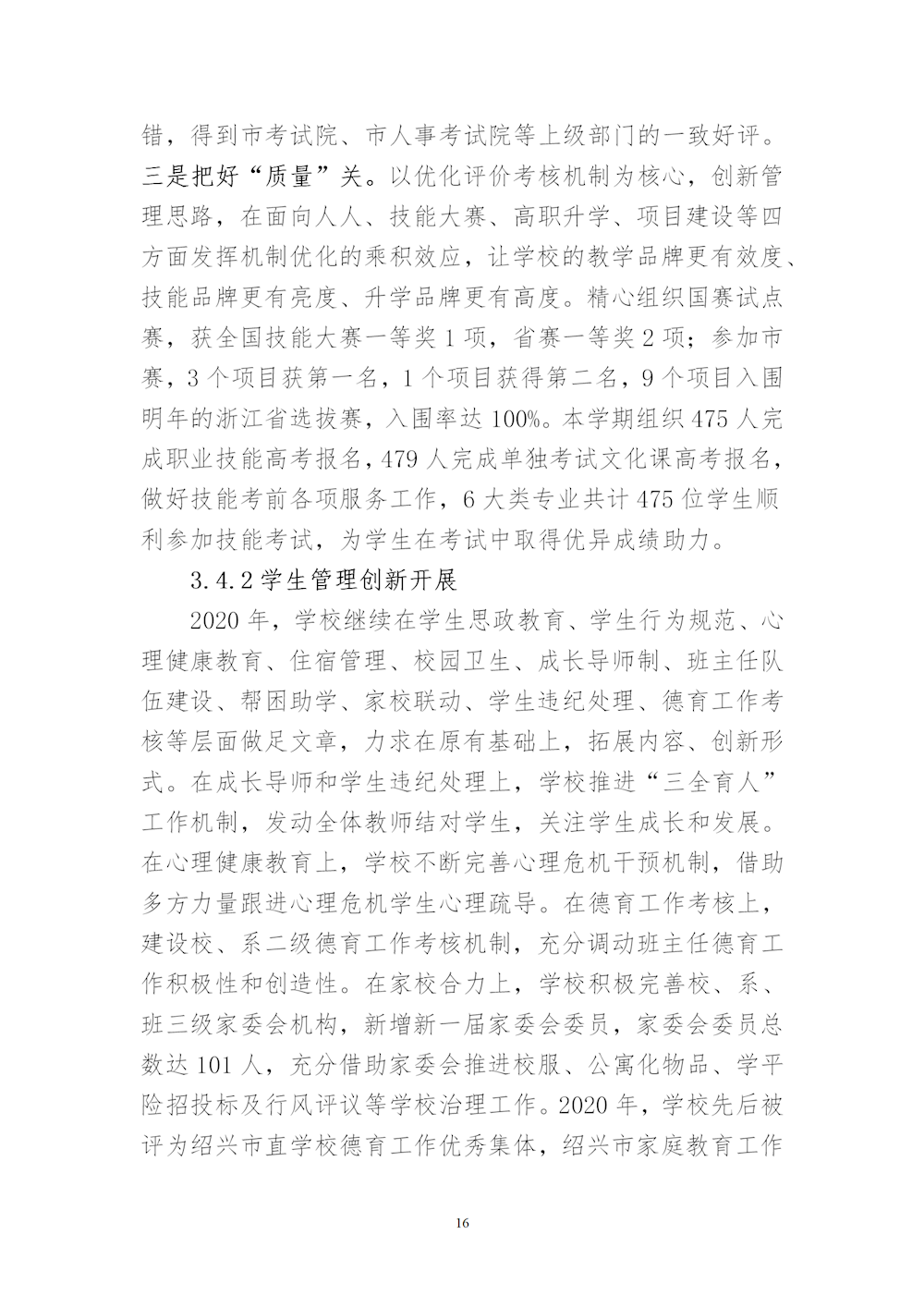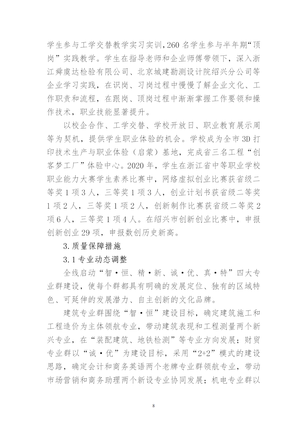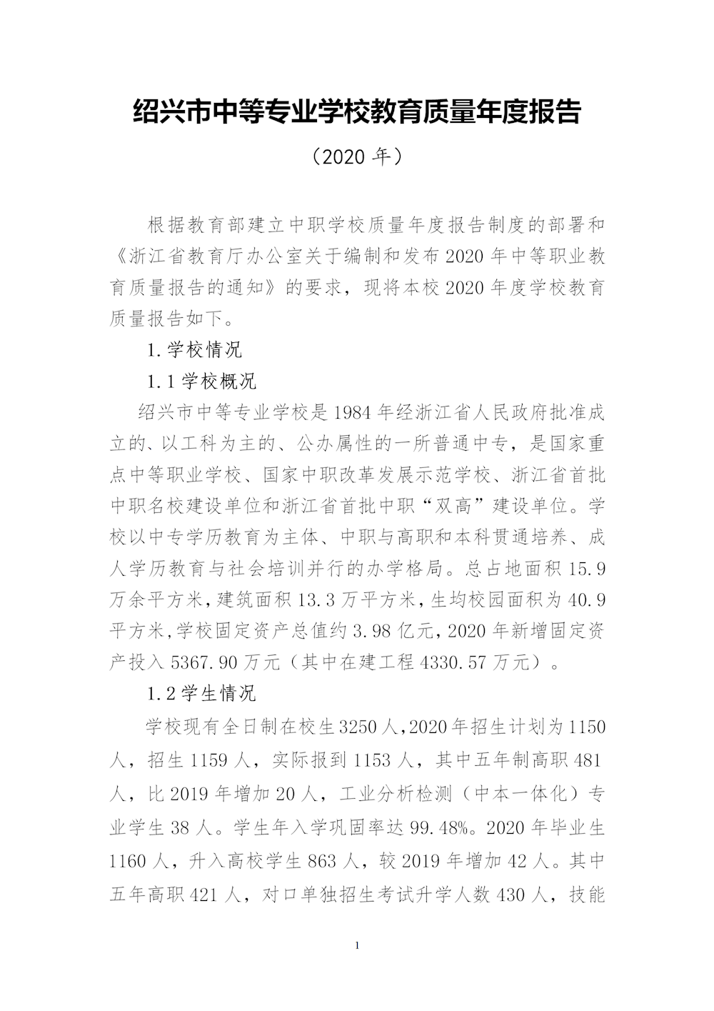 绍兴市中等专业学校2020年教育质量年度报告