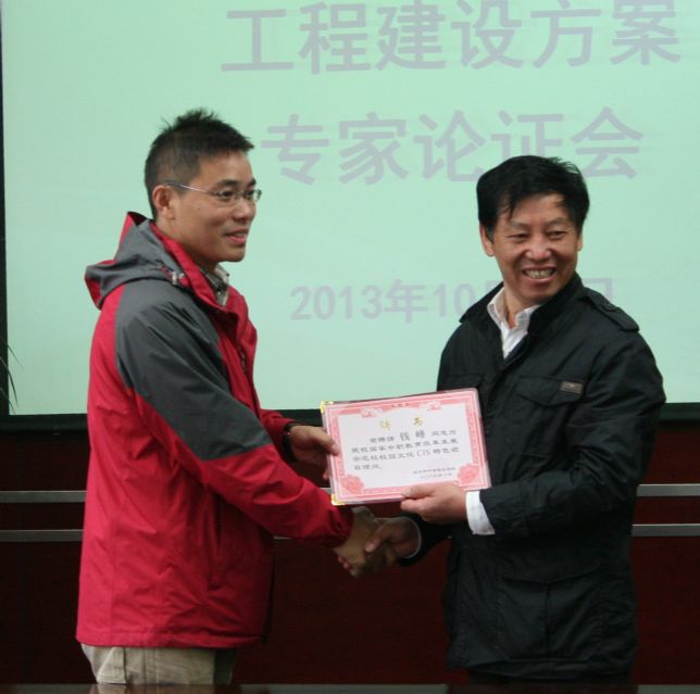 会议由我校王书记主持,会议首先由娄校长向八位专家、领导颁发了学校文化CIS项目顾问聘书。娄校长紧接着做了题为“传承胆剑精神、弘扬蓝领文化、践行宝贝计划”的汇报,从“本土文化引导人”、“ 环境文化熏陶人”、“ 制度文化规范人”、“ 职业文化塑造人”、“ 活动文化激发人”五个方面介绍了我校文化育人的实践探索。接着,校园文化CIS项目组负责人於芳老师就《校园文化CIS工程特色项目建设方案》向与会专家领导做了汇报。