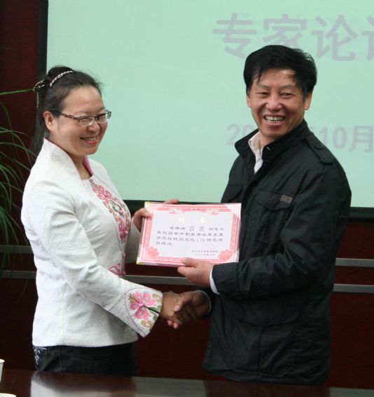 会议由我校王书记主持,会议首先由娄校长向八位专家、领导颁发了学校文化CIS项目顾问聘书。娄校长紧接着做了题为“传承胆剑精神、弘扬蓝领文化、践行宝贝计划”的汇报,从“本土文化引导人”、“ 环境文化熏陶人”、“ 制度文化规范人”、“ 职业文化塑造人”、“ 活动文化激发人”五个方面介绍了我校文化育人的实践探索。接着,校园文化CIS项目组负责人於芳老师就《校园文化CIS工程特色项目建设方案》向与会专家领导做了汇报。