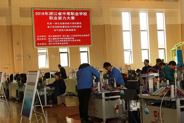 浙江省中等职业学校职业能力大赛由浙江省教育厅、浙江省人力资源和社会保障厅主办,是我省整合中职学校学生技能大赛、文明风采大赛、创新创业大赛和教师技能大赛等各项竞赛后唯一的一项综合性赛事。从2015年开始,大赛项目确定为学生和教师两方面。学生比赛项目包括技术技能和职业素养两部分。此次浙江省中等职业学校职业能力大赛“电工电子类”赛项由浙江省教育厅职成教教研室和浙江工业大学教育科学与技术学院承办,由绍兴市中等专业学校和柯桥区职教中心协办,设有电气安装与维修、电梯维修与保养、单片机控制装置与调试、户式中央空调安装与调试、机电一体化设备组装与调试等5个项目的比赛。共有来自全省各中职学校的200多名学生为争夺参加2016年全国职业院校技能大赛的入场券展开了激烈地角逐。