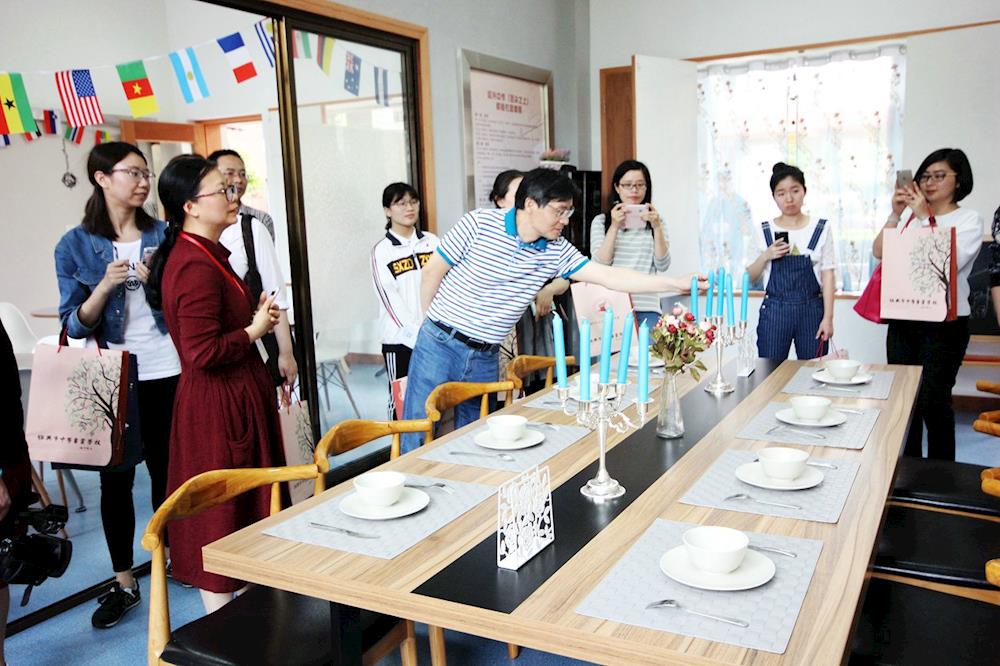 浙江省师德楷模屠小夫(右二)作学生管理介绍