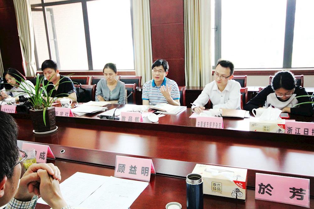 绍兴市模范教师金忠义(左一)作教学改革介绍