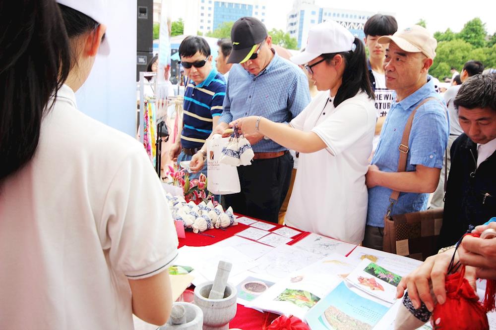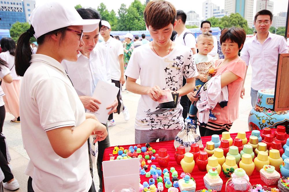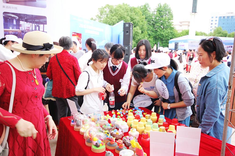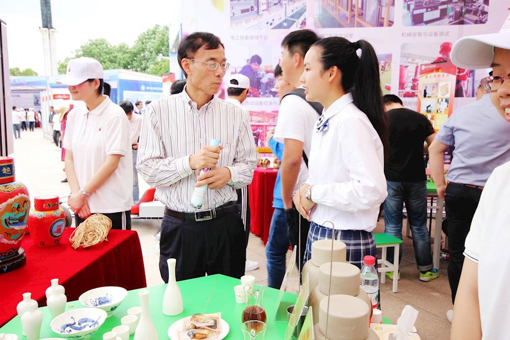 活动开始后,迅速吸引了大批市民驻足参观。学校的生物制药专业为省级新兴专业,只见中药作品展示摊位前,市民们人头攒动,原来是同学们自制的中药驱蚊香囊激发了广大市民的兴趣,精致古朴的外观,浓郁的药香,实惠的价格引得市民们纷纷慷慨解囊,不足一小时驱蚊香囊便被抢购一空。再来看看黄酒及彩泥堆塑工艺摊位,学校的黄酒酿造专业为全国职业院校民族文化传承与创新示范专业,市民们被浓郁芬芳的黄酒香味吸引,纷纷上前品尝同学们自己酿造的黄酒。“叔叔,你看一下这个小酒坛是我们自己烧制的,上面的彩绘也是我们自己画的,里面装的黄酒也是我们自己酿造的,从里到外都是纯手工的”一位黄酒专业学生正向围观市民介绍他们的实训成果。现场还展示了学生彩泥堆塑工艺作品,吸引了一大批小朋友争着让父母购买;草木扎染丝巾、扎染T恤和球鞋则收到了市民的批量订单,希望学校能送货上门;建筑桥梁模型和创意水管花卉吸引了不少摄影爱好者前来拍照;师生自制的电动小汽车、钳工小制作和机电一体化设备则成了展位上最“拉风”的作品,一位曾做过车工的老先生看见这些作品,惊叹说:“我以前可做不出这种产品,没想到现在的设备这么先进,学生制作的这么精密,真是不得了啊!”