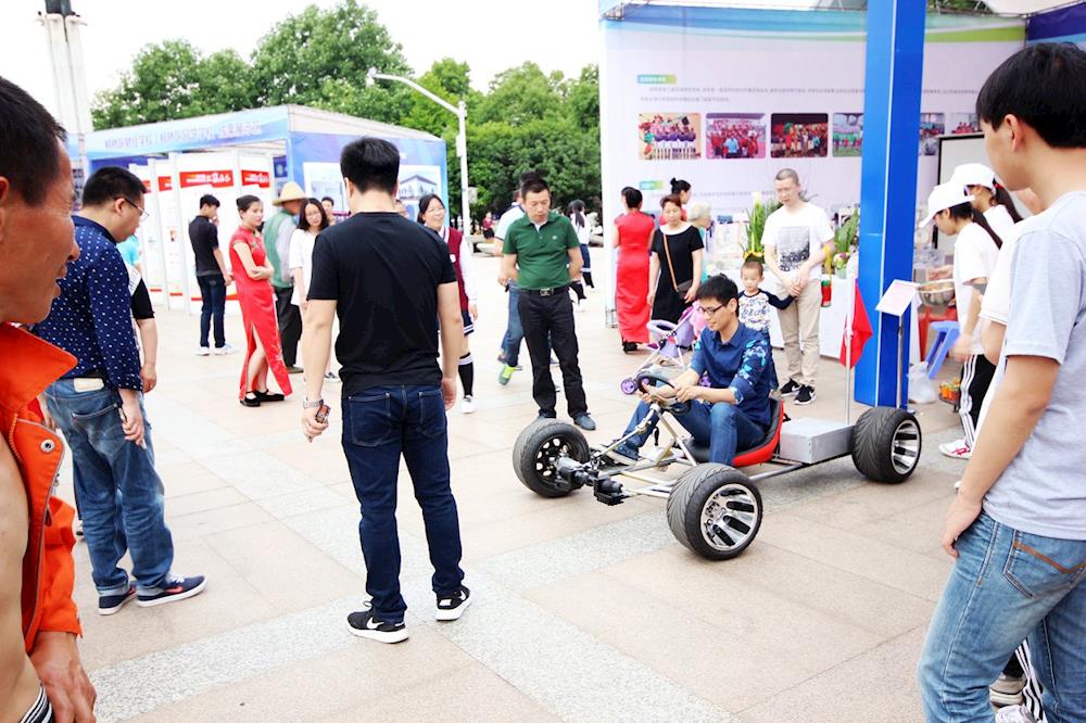 学校老师展示电动小汽车