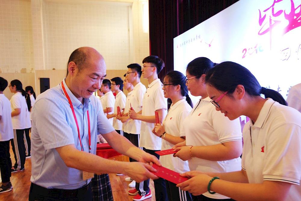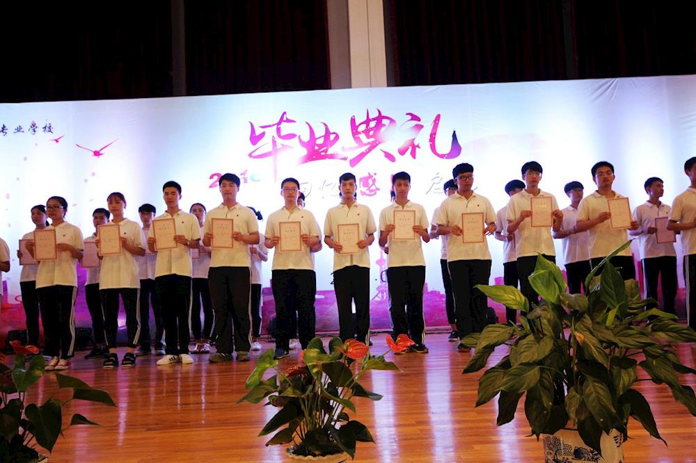 典礼上,学校师生合唱一曲《版南山南》,将所有学子们回忆的思绪带回到了毕业典礼的现场。校党委书记王慧莉隆重宣布,经学校批准, 2016届的1213名学子正式毕业了。学校领导和家长代表亲自上台为全校各系部的优秀毕业生颁发荣誉证书,今年学校共有143人获得了“校级优秀毕业生”称号,当优秀毕业生上台接受师长们的颁奖和祝福时,掌声久久地在礼堂里回荡。