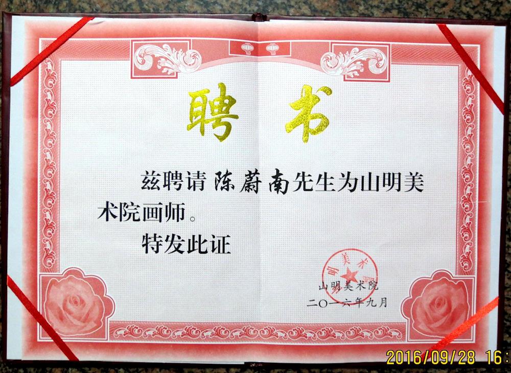 绍兴中专陈蔚南老师被山明美术院聘为“特聘画师”