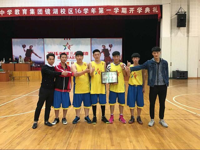 参加三人篮球比赛的队员和指导教师合影