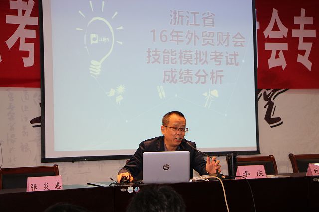 在活动开幕式上,张炎惠老师首先代表承办学校对与会教师的到来表示热烈欢迎。他向各位教师介绍了的情况,特别是近几年来学校在高职考方面所取得的成绩。紧接着,高职考试研究联合体名誉理事长、全国说课金牌教练李庆老师做讲座,李老师针对前不久刚刚结束的外贸财会技能操作联考的数据作了详尽的分析,在分析中李庆老师特别强调了在目前的互联网环境下需重视大数据分析,以及大数据对分析考试成绩所带来的变革。李庆老师先进的分析方法让与会教师感到受益匪浅。讲座结束后,与会教师兵分两路,分头参加财会和外贸两个专业的省联合体技能联考试题解读,解读会分别由财贸系主任周铭梨和慈溪职高外贸专业组长陆梦青主讲,在解读会上,主讲人和与会教师一起对专业技能操作联考试题进行了深入的探讨,分享了经验,提出了一些方案和对策。解读会之后,活动组织者又安排了听课与评课的活动,与会教师分组听取了财会专业教师王燕飞和外贸专业教师高飞梁的公开课,并在课后对两位教师的上课情况进行了深入细致的讨论和点评。