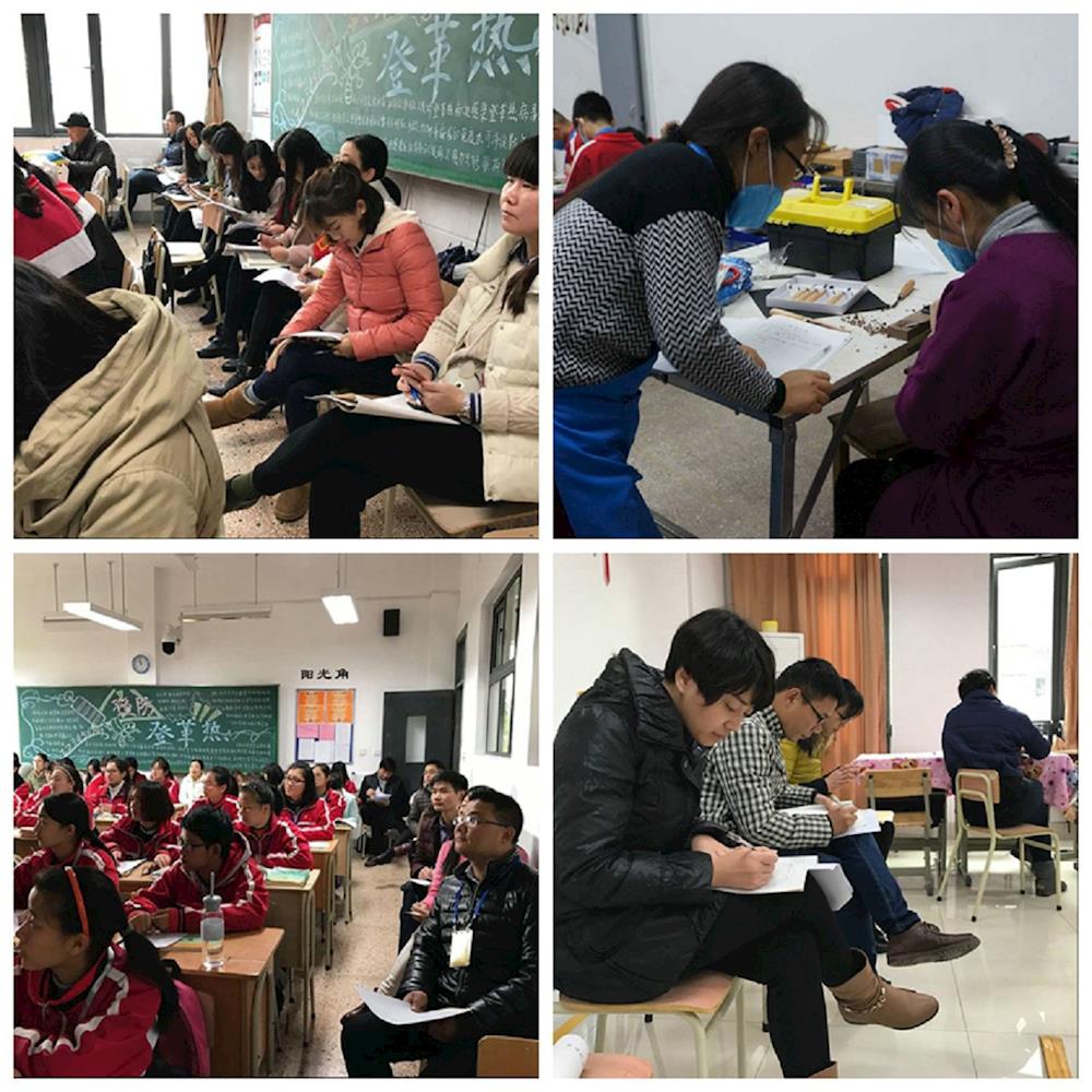 第一党支部李琳老师开设题为《巧设支点破案追凶》的语文课,以寻找“谁杀死了祥林嫂”为案件中心,新视角解读鲁迅的《祝福》;第二党支部郭霞斐老师开设的《智慧走人生》职业生涯辅导课,从话题讨论、调查会、积木搭建动手合作等过程层层深入探讨人生话题;第三党支部谢峰、蔡菊琴老师开设的《勺之约》木工工艺技术课,示范引领,学生积极动手参与,激发学生的学习兴趣,培养学生的工匠精神;第四党支部张佩丽老师开设《等比数列前N项和公式》的数学课,张老师教学艺术精湛,课堂教学效果甚好;第五党支部孟建明老师开设的《身体素质训练加体质健康测试》体育课,展示了孟老师深厚的教学功底。生动活泼的课堂不仅带给学生极大的乐趣,而且使听课的教师感受了教学手段的丰富多彩。