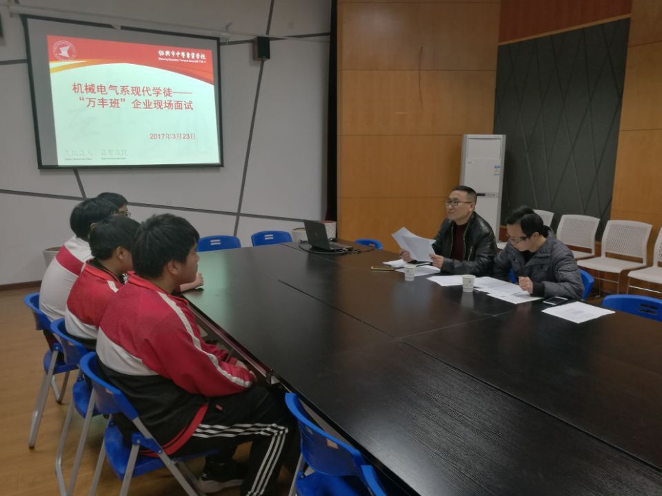 万丰企业2名高管对我校“万丰班”的学生进行了面试,全班全部录取。埃克森电梯维保部的王总和罗主任前来面试,15电气运行班11人、15城市轨道班12参加了这次面试,王总对面试学生提出了踏踏实实,勤勤恳恳努力学好技术的要求,同时也将公司一直宣传的“快乐工作”的开云体育讲给同学们听,鼓励同学们在学校要好好学习,工作后要快乐工作。经过了此次面试,最终有7名学生被企业录取。