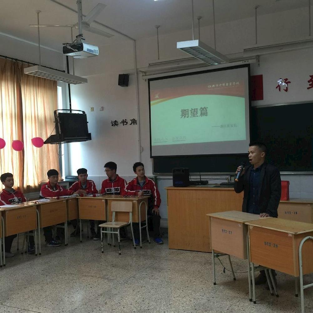 15建筑施工班的同学们以歌曲独唱、诗朗诵、讲座、游戏、学生合唱等丰富多彩的环节讲述着他们对中国梦的理解和追求,以梦为马,不惧失败;计划、自律,坚持就是班主任老师送给他们的走向成功道路的珍贵人生经验和法宝。