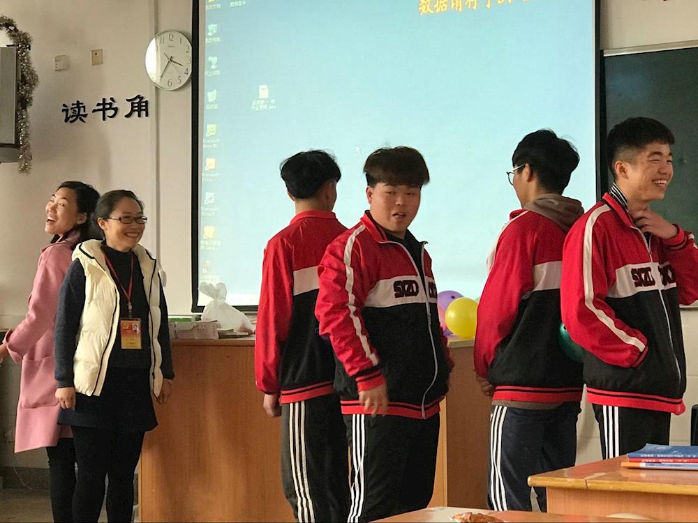 图为师生一起进行游戏互动