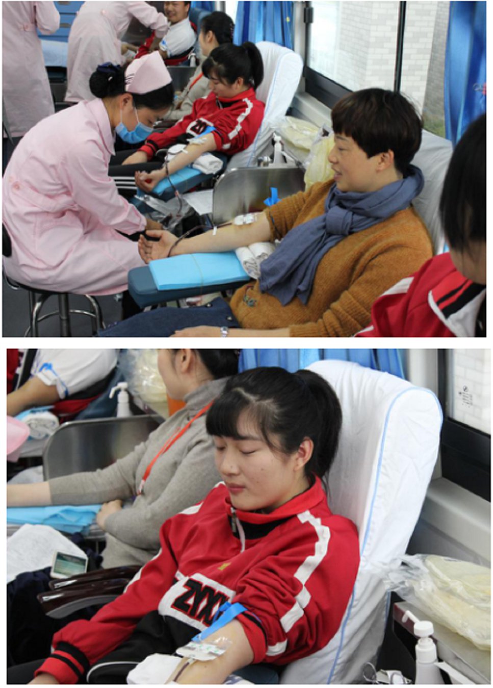 轻皱眉黛,眼神坚定,今年的献血车上多了几道靓丽的风景,彭晓美、郁魏巍、蔡菊琴、叶华玲等老师与14会计3+2的女生们也用自己的行动践行着大爱。奉献既是勇敢,奉献也是美丽,愿我们心目中的爱心女神一直岁月静好,时光未央。