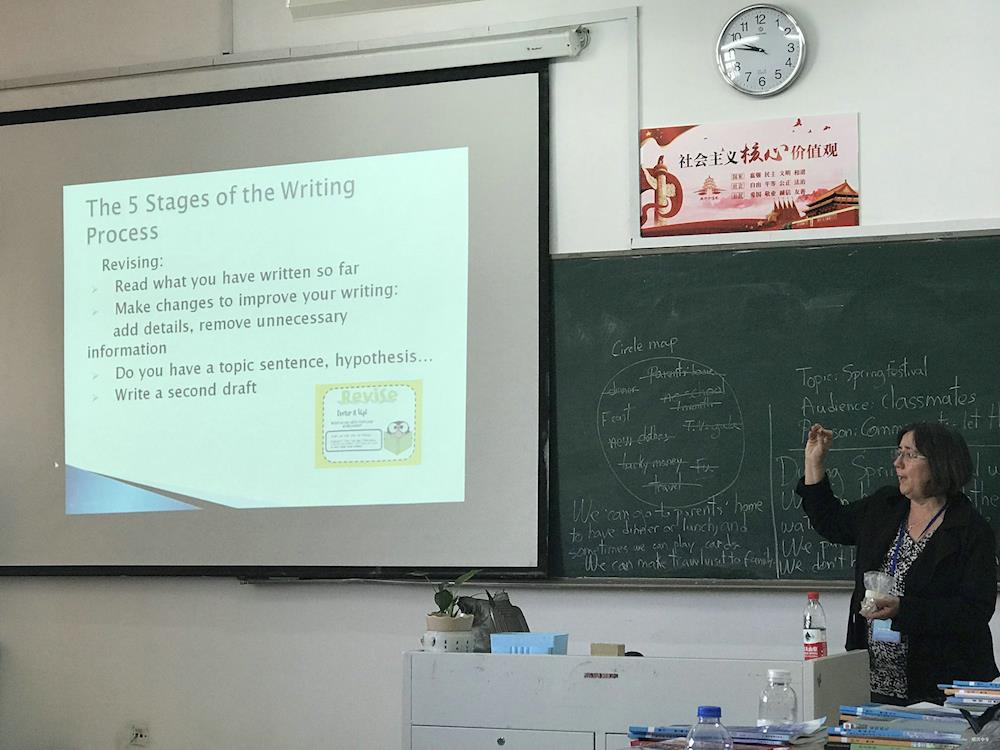 上午,来自越秀姐妹学校美国玛雅安杰卢高中的5位外教开出了公开课,英语教研大组的教师们 分别选择了不同的班级听课。美国外教的授课轻松自然,他们鼓励学生们参与讨论、积极发言,同学们浸润在英语的语言环境里,也能积极地回应外教,围绕课堂主题进行英语交流。观摩教学后,美国教师进行了教学管理座谈和升学指导讲座,中美双方教师交流学习、研讨教学。