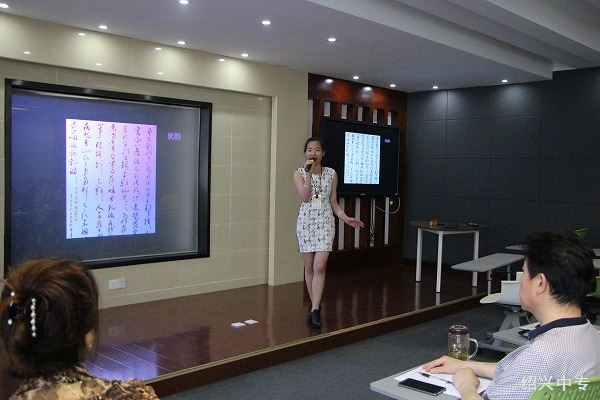 比赛开始,教师们各展才华,现场气氛热烈,精彩纷呈。各经典诗篇在教师们或高亢嘹亮,或深沉浑厚的朗诵中,重新焕发出迷人的艺术魅力。其中,郑瑜老师的《钗头凤》让人不禁回忆起千百年前那段凄美纯真的爱情故事;薛旭东老师的现代诗《给我的孩子》情真意切,娓娓道来,让我们体会到了父母给予孩子的深沉的爱;在陈霞芳老师的《雨巷》中,我们似乎隐约能窥见那手执一柄油纸伞,身穿一袭苏青白裙的丁香花姑娘;而吴舞老师的《梦游天姥吟留别》又将众人的思绪拉回了那个权贵盛行的年代,李白轻晃酒杯,将酒意啸成剑气披荆斩棘……